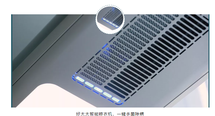 好太太智能晾衣機纖細輕盈的外形,能夠節省更多陽臺空間,又仍然具備著殺菌除螨等強大功能。