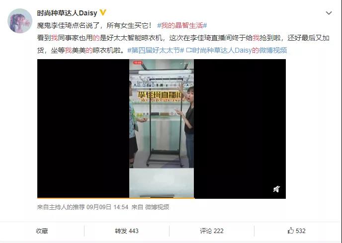 他們不僅從個(gè)人經(jīng)歷出發(fā)給粉絲分享智能家居晶智生活的體悟,并基于好太太智能家居產(chǎn)品的實(shí)際使用感受,為粉絲們強(qiáng)烈安利了既便捷、又安全和高效的好太太智能晾衣機(jī)、智能鎖、毛巾架等智能好物,引起了直播間內(nèi)粉絲的一頓瘋搶。