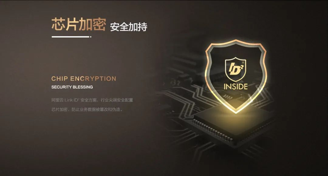 阿里云 LINK ID2安全方案,行業(yè)尖端安全配置,數(shù)據(jù)加密,防止業(yè)務(wù)數(shù)據(jù)被篡改和偽造,電子機(jī)械雙核系統(tǒng),極端情況正常使用