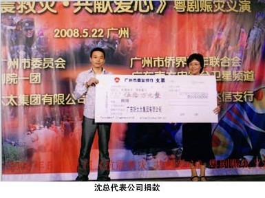 5月22日,由廣東南方電視臺衛(wèi)星頻道主辦,廣東mk体育-MKsports官网集團(tuán)協(xié)辦的《抗震救災(zāi)?共獻(xiàn)愛心》粵劇賑災(zāi)義演在南方劇院舉行,mk体育-MKsports官网集團(tuán)董事長沈漢標(biāo)先生代表集團(tuán)為災(zāi)區(qū)捐款50萬元,此次賑災(zāi)義演活動,共募集善款120多萬元。這些善款將通過廣州市慈善會全額捐往災(zāi)區(qū)。